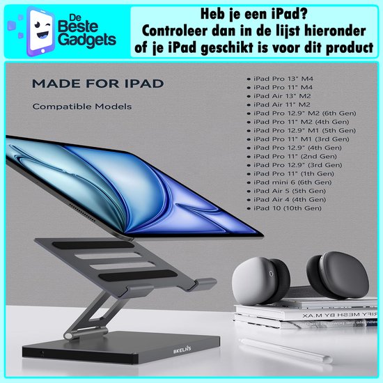 Slank en draagbaar ontwerp – Gemaakt van duurzaam aluminium met antislipvoetjes en een opvouwbare houder. Compact genoeg om in je laptoptas te passen.