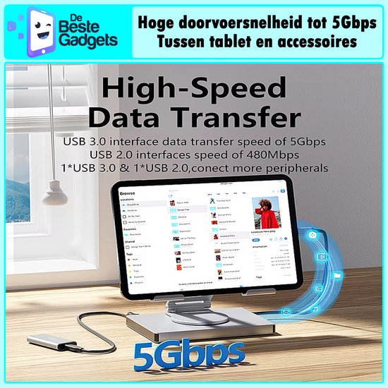 Alles-in-één ontwerp – Combineer gemak en functionaliteit met deze slanke 7-in-1 USB-C hub met praktische tabletstandaard. Ideaal voor thuis, kantoor of onderweg.
