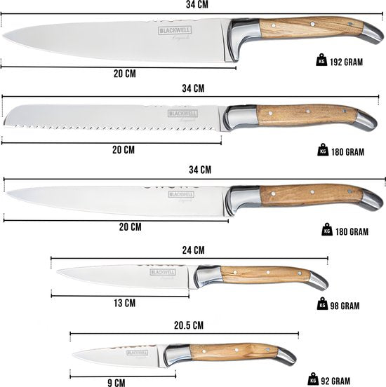 Bestel nu het Blackwell Messenblok Laguiole - Olijfhout 6-Delig en breng jouw kookkunsten naar een hoger niveau!